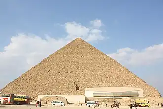 ![]() El Museo de la barca de Keops delante de la cara sur de la Gran Pirámide de Giza | ||