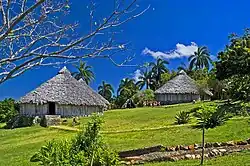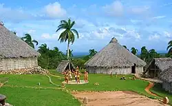 Frente al museo se encuentra la Aldea taína, una reconstrucción a tamaño real de un poblado indígena. Allí se representan escenas de la vida cotidiana de los taínos: preparación de alimentos, rituales, danzas y ceremonias. Forma parte del circuito museológico del Chorro de Maíta y busca ofrecer una visión didáctica sobre la cultura taína. En este espacio también funcionan un pequeño restaurante y un bar.
