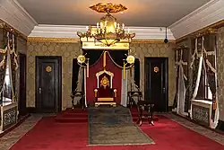La concubina imperial Li Yuqin estaba alojada en la parte este del segundo piso. El edificio hoy contiene el Trono de Manchukuo, varios muebles, algunas réplicas de las joyas de la corona, banderas, algunos vestidos y uniformes, una copia de la declaración de independencia de Manchukuo y otros artículos oficiales. Detrás del trono está el escudo nacional, con una estrella de cinco puntas, en diferentes colores que representan las cinco nacionalidades de Manchukuo: manchú (rojo), chino (amarillo), mongol (azul), japonés (blanco) y coreano (negro).
