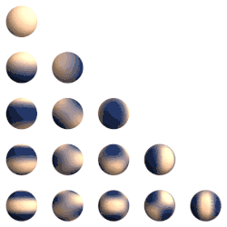 - l = 2: Subórbita "d" (forma lobular, con anillo nodal) →d proviene de difuse (difuso) (*)Tiene cinco espacios para diez electrones.
