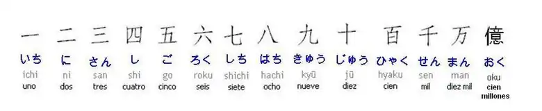 | Lectura preferida | zero | ichi | ni | san | yon | go | roku | nana | hachi | kyū | jyū | hyaku | sen |