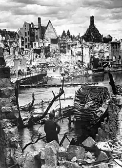 Junto a Berlín, Essen, Düsseldorf, Hamburgo y Múnich, Núremberg fue una de las ciudades alemanas que sufrió mayores destrucciones por los bombardeos de los Aliados durante la guerra, posiblemente solamente superada por Dresde. Los bombardeos se realizaron entre 1943 y 1945, siendo uno de los más graves el del 2 de enero de 1945 donde perecieron 6.000 civiles, 100.000 quedaron sin hogar y el 90% de la ciudad medieval fue destruida. La ciudad finalmente fue ocupada el 20 de abril de 1945 por el Séptimo Ejército de los Estados Unidos de Norteamérica tras cinco días de resistencia.