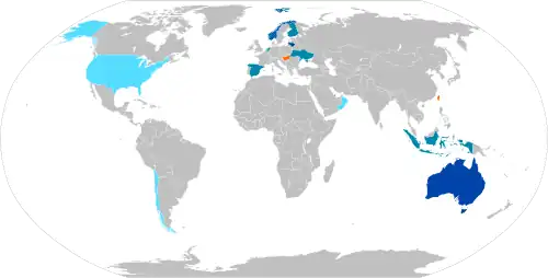 Australia – contrato para NASAMS-3 firmado en marzo de 2017, valorado en 2.500 millones de dólares australianos.[87] El sistema será ensamblado localmente por Raytheon Australia y reemplazará los sistemas RBS-70 en servicio.[88] Australia recibió sus primeros lanzadores en 2022.[89]
