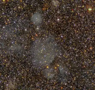 Está aproximadamente a la misma distancia de nosotros que la Pequeña Nube de Magallanes a unos 199 000 años luz.[4]