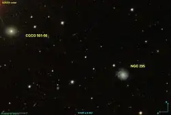 La posición de NGC 295 dada por Copeland es cercana a la galaxia NGC 296,[1] pero una estrella de magnitud aparente de 10.0 al noreste no coincide con la descripción. Por esto varias fuentes consideran que NGC 295 es la galaxia NGC 296 o incluso un objeto perdido.[7] Según Harold Corwin creyó estar observando otra galaxia cercana,[8] por lo que ahora está claro que debió haber observado un par de galaxias y no NGC 296. De hecho, la galaxia que creyó ver cerca es CGCG 501-56.[9]