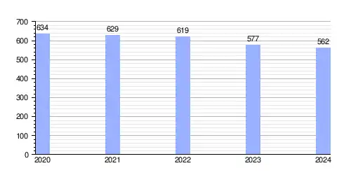 | Gráfica de evolución demográfica de Nagybörzsöny entre 2020 y 2024 |
