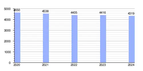 Hasta 2024 la población era de 4319 habitantes,[2] con una densidad de población de 45,19 hab/km².[2]