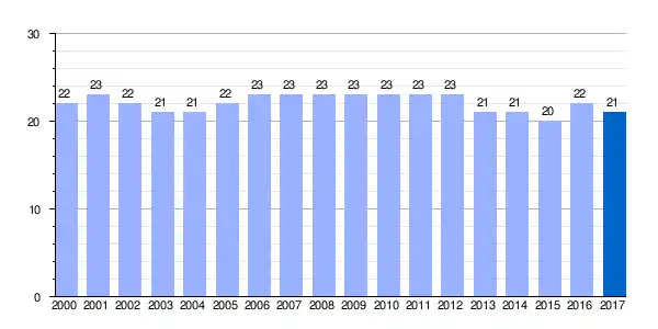 | Gráfica de evolución demográfica de Nanclares de Gamboa[7] entre 2000 y 2017 |
