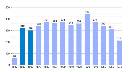 | Gráfica de evolución demográfica de Narrillos de San Leonardo[3] entre 1842 y 1970 |