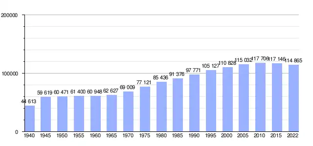 | Gráfica de evolución demográfica de Nasushiobara entre 1940 y 2022 |