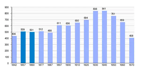 | Gráfica de evolución demográfica de Navarrete del Río[5] entre 1842 y 1970 |