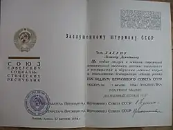 | Navegante de Pruebas Honorífico de la URSS | ||
