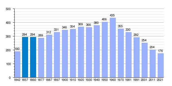 | Gráfica de evolución demográfica de Navianos de Valverde[10] entre 1842 y 2021 |