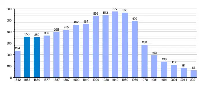 | Gráfica de evolución demográfica de Neila de San Miguel[5] entre 1842 y 2021 |