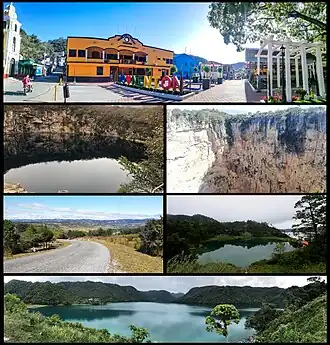 ![]() Desde arriba y de izquierda a derecha: parque Central de Nentón, Cenotes de Candelaria, Hoyo el Cimarrón, finca La Trinidad, Lagunas de Montebello y Laguna Brava.
