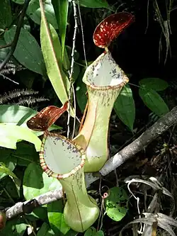 - ↑ Bauer, U.; C.J. Clemente; T. Renner; W. Federle (2012). Form follows function: morphological diversification and alternative trapping strategies in carnivorous Nepenthes pitcher plants 25 (1). Journal of Evolutionary Biology. pp. 90-102. doi:10.1111/j.1420-9101.2011.02406.x.