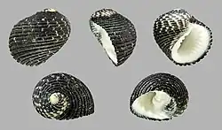 Nerita albipunctata Reeve, 1855; Nerita antillarum Gmelin, 1791; Nerita lindae Petuch, 1988; Nerita listeri Récluz, 1841; Nerita nigreola Röding, 1798; Nerita praecognita C. B. Adams, 1845; Nerita (Theliostyla) fulgurans Gmelin, 1791 | ||