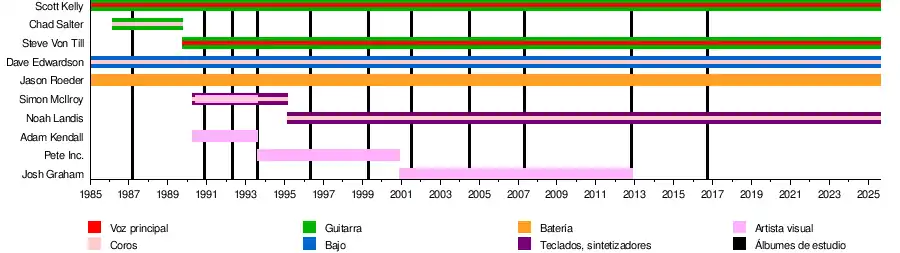 Chad Salter se integró posteriormente como segundo guitarrista y voz en el año 1986. La banda ha tenido muy pocos cambios en su alineación desde su formación. En el año 1989, Chad Saltes fue reemplazado por Steve Von Till, quien previamente había formado parte de bandas como Transgressor, Peace Test y Tribe of Resistance, y un año después Simon McIlroy se integró a la banda ocupándose de los sintetizadores y samplers junto con Adam Kendall como artista visual (ambos eran amigos desde temprana edad y ya habían trabajo anteriormente en algunos proyectos de música experimental).[2] En el año 1995 Noah Landis, un amigo de la infancia de Dave Edwardson reemplazó a Simon McIlroy en los teclados.[3]
