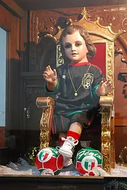 En Tacuba (Ciudad de México)], hay una imagen llamada Niño Futbolista aunque su nombre real es "Santo Niño de los Milagros". Se considera generoso a la hora de conceder milagros y se encuentra en una vitrina rodeada de juguetes que regalan los fieles a los favores recibidos. Cada cuatro años, cuando se juega la Copa Mundial de la FIFA, esta imagen es vestida (de forma sacrílega) con el uniforme de la selección nacional de fútbol de México, con la esperanza de que México gane la copa.[14]