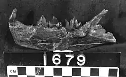 ![]() Mandíbula de Nimravus brachyops en el "University of California Museum of Paleontology". | ||