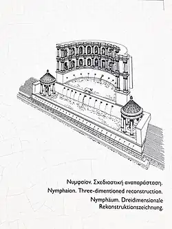 Este Ninfeo o Exedra, una fuente monumental de agua fresca, fue financiado y mandado construir hacia el año 153 por Herodes Ático, en honor de su esposa Regila.[2]