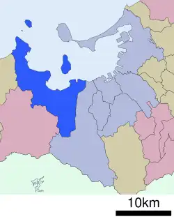 - ↑ «西区». Página oficial de la ciudad de Fukuoka (en japonés). Consultado el 23 de septiembre de 2011.