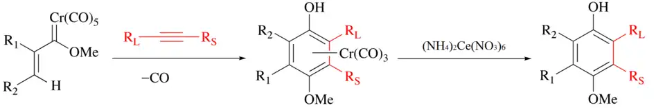 - ↑ Waters, M.; Wulff, W. D. (2008). «The Synthesis of Phenols and Quinones via Fischer Carbene Complexes». Organic Reactions 70 (2): 121-623. doi:10.1002/0471264180.or070.02.
