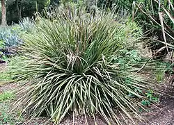 Es una planta casi sin tallo, rizomatosa. Con las hojas herbáceas, de color verde a amarillo claro, cayendo al suelo, las hojas son de 40 a 80 cm de largo y 7 a 11 mm de ancho. Los márgenes de las hojas son dentados. La inflorescencia es de 0,4 a 1,4 m de alto con muchas ramas. Las flores son de 1.7 a 2.5 mm de largo y de ancho. El periodo de floración es en mayo. En la madurez de las cápsulas leñosas son 70-10 mm de diámetro. Las semillas son esféricas de 3 mm de diámetro.