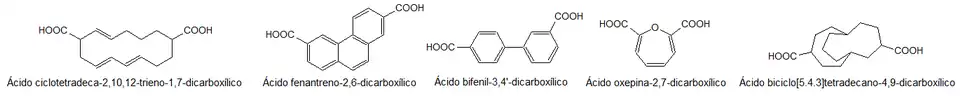 Si los grupos carboxilo se encuentran sobre un mismo sistema cíclico, el sistema se nombra como un "ácido cicloalcano(anuleno) dicarboxílico"