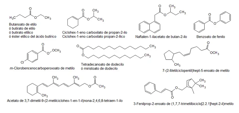 Ácido carboxílico > Éster carboxílico > Aldehído > Cetona > Alcohol > Hidroperóxido> Hidrocarburo > Éteres y peróxidos .[41]