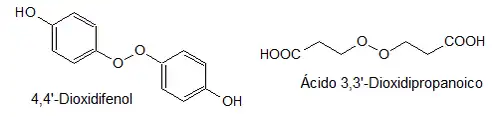 - (b) En agrupaciones de unidades moleculares idénticas, se utiliza el prefijo "dioxi-" para denominar al grupo bivalente "-O-O-" y se citan los localizadores de acuerdo a la nomenclatura multiplicativa: