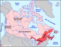![]() Norteamérica británica en 1867, previa a la creación del Dominio del Canadá | ||||||||||||||||||||||||||||||||||