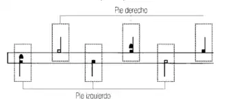 La notación de Martínez de la Peña consta de 5 símbolos básicos denominados: punta, tacón, planta, puntera y tacón raspado; para representar las distintas formas con las que el pie golpea el suelo. Se suman las indicaciones de Derecha o Izquierda y números para indicar los tiempos flamencos.[1]