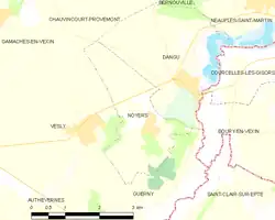- Situación de Noyers en un mapa de Francia y de comunas limítrofes Archivado el 21 de febrero de 2010 en Wayback Machine. (en francés)