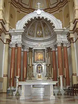 Durante mucho tiempo el cuadro original de la Virgen de las Mercedes conservó su antiguo marco de madera dorada con fondo rojo. Cuando el padre Leonidas Lopera inauguró en 1915 el altar de madera realizado por los ebanistas Carvajales, hizo retirar el marco, sin separar el lienzo de su bastidor, para poner la antigua imagen en el nicho superior del altar central. Allí permaneció en esas condiciones, hasta que en el año de 1930 el padre Julio Ortega sufragó los gastos para ponerle un nuevo marco y por primera vez una protección de vidrio.[1]