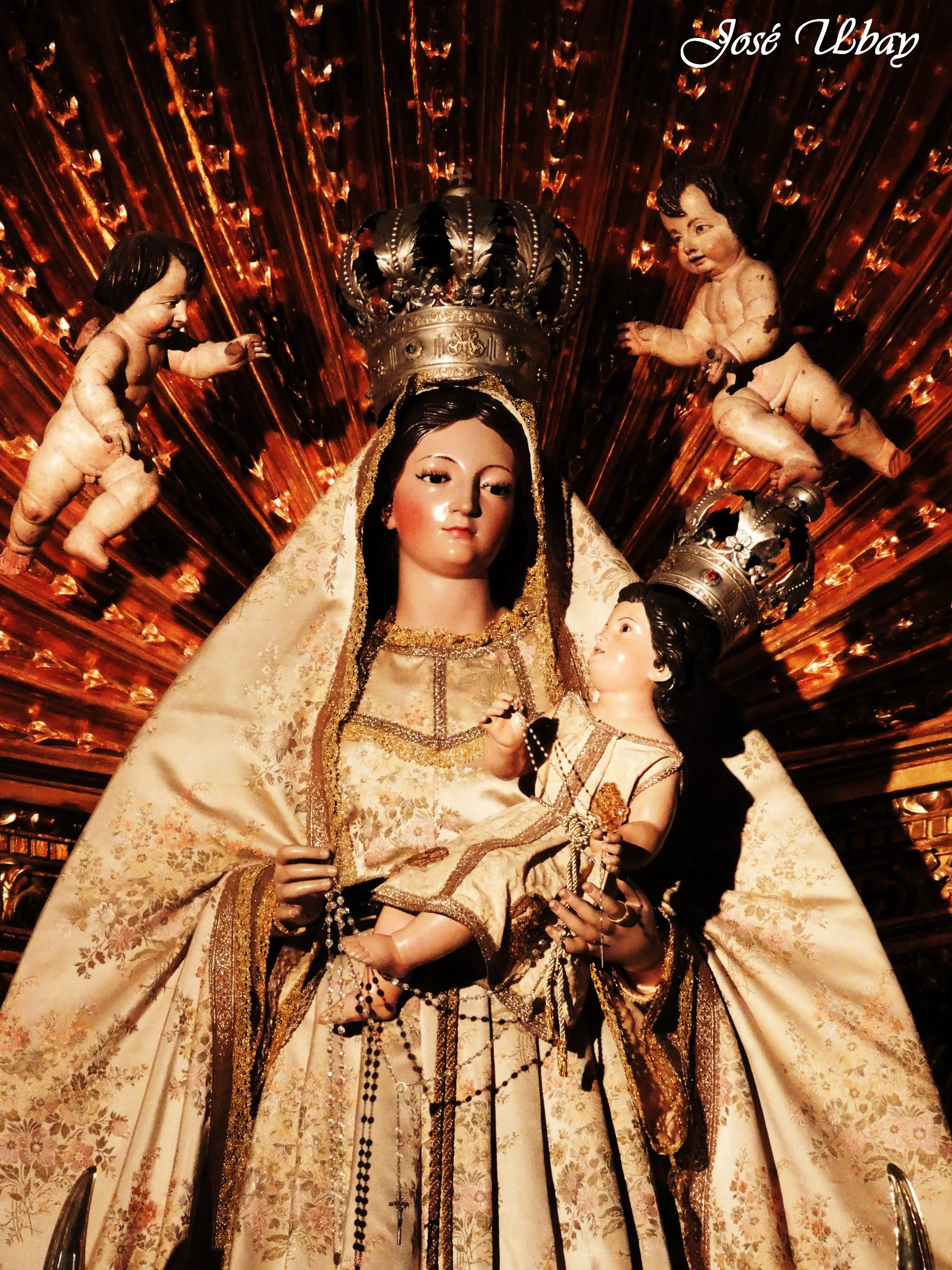 La Virgen sostiene al Divino Infante en su brazo izquierdo y porta el santo rosario en la mano derecha, símbolo de su advocación. Preside su capilla en la nave de la Epístola de la parroquia de santo Domingo de Guzmán.