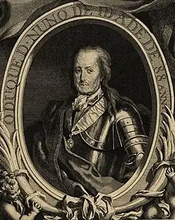 - ↑ a b c d e f g h «Cadaval (D. Nuno Álvares Pereira de Mello, 4.º marquês de Ferreira, 5.º conde de Tentúgal, e 1.º duque de).». Portugal - Dicionário Histórico, Corográfico, Heráldico, Biográfico, Bibliográfico, Numismático e Artístico (en portugués) II. pp. 590-591. Consultado el 17 de octubre de 2011.