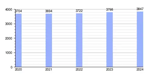Hasta 2024 la población era de 3847 habitantes,[2] con una densidad de población de 120,18 hab/km².[2]