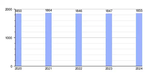 Hasta 2024 la población era de 1855 habitantes,[2] con una densidad de población de 32,27 hab/km².[2]