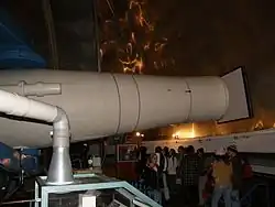 - Telescopio gran refractor:[5] su objetivo está compuesto por un doblete acromático de 650 milímetros de diámetro y su distancia focal es de 10,5 metros.