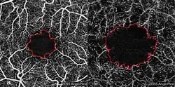 Una de las complicaciones principales es el glaucoma neovascular que está causado por la liberación de sustancias que estimulan la proliferación de nuevos vasos sanguíneos en el ojo como respuesta a la isquemia. Los nuevos vasos pueden formarse sobre el iris (rubeosis iridis) e impiden la reabsorción de un líquido llamado humor acuoso que circula libremente en condiciones normales en el polo anterior del ojo. El exceso de humor acuoso desencadena hipertensión ocular y un ataque agudo de glaucoma que puede ocurrir varios meses después del inicio de la enfermedad.