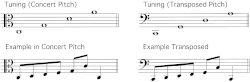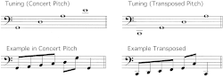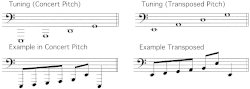 - ↑ La existencia de dos bajos, uno más pequeño y otro más grande, también era una característica de la familia de las violas da gamba, que tenía dos tipos de violones afinados con una cuarta de separación