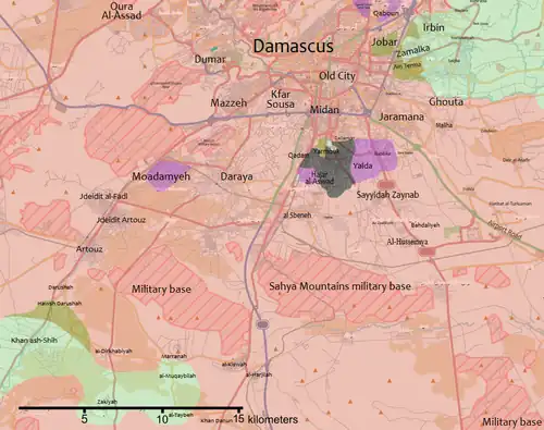- ↑ a b Charkatli, Izat (1 de diciembre de 2016). «Map Update: Western Ghouta firmly under government control». Archivado desde el original el 6 de marzo de 2019. Consultado el 4 de marzo de 2019.
