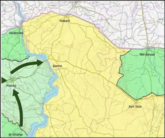 - ↑ «Minbic'den sonra Kobanî'ye saldırdı». YeniOzgurPolitika.com (en turco). 10 de diciembre de 2024. Consultado el 11 de diciembre de 2024.