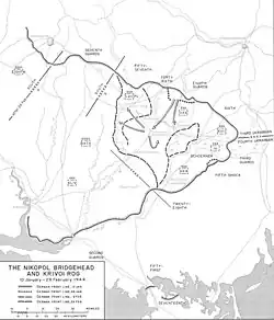 Los ejércitos soviéticos 13.º y 60.º se movieron a través de los huecos en la línea defensiva alemana, rodeando la ciudad.[33] Las fuerzas alemanas restantes capitularon el 5 de febrero de 1944.[34]