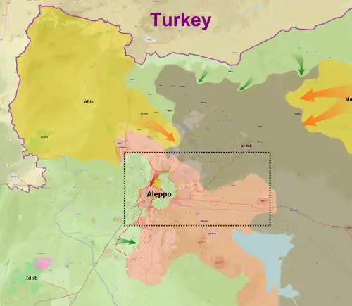 - ↑ «Opposition Forces Re-Seize Over Villages Northern Aleppo». Archivado desde el original el 19 de octubre de 2017. Consultado el 10 de abril de 2016.