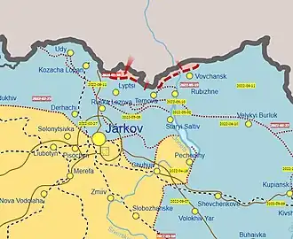 - ↑ «Попытка прорыва границы: в ВСУ призвали жителей севера Харьковщины эвакуироваться (карта)». ФОКУС. 10 de mayo de 2024.