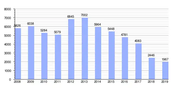 | Gráfica de evolución de Deuda viva del Ayuntamiento de Ogíjares entre 2008 y 2019 |