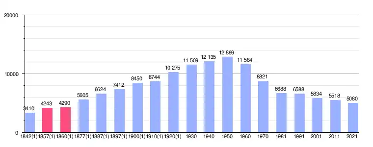Su término municipal tiene 149,3 kilómetros cuadrados. Actualmente el número de habitantes es 5 086, aunque en el año 1950 llegó a contar con más de 13 000 habitantes.[2]