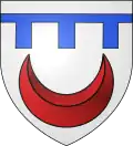 De argén, una creciente de gules, en el lambel de azur. |